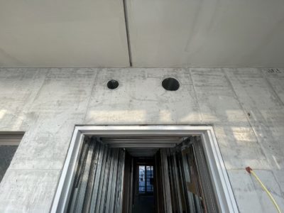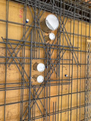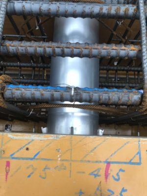 「コンクリートを流し込む前にあらかじめスリーブと呼ばれる建材を仕込み、