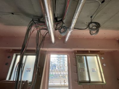天井内や壁や床に対しての各種配管の通り道を作る」
