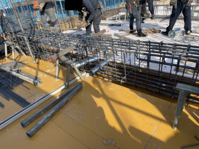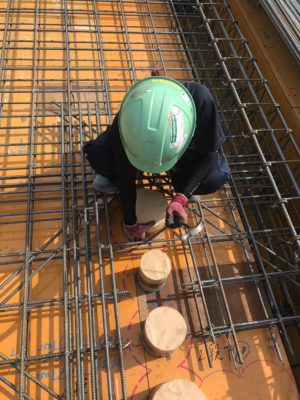 鉄筋屋さんが各種鉄筋を配筋していきます。